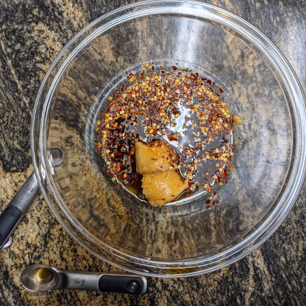Whisk all ingredients together in a small bowl. Can be stored in the refrigerated and re-whisked for at least 3 days.